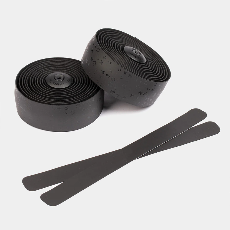 To finish installation, lock the bar tape in place with regular or electrical tape and top it off with the supplied finishing tape.