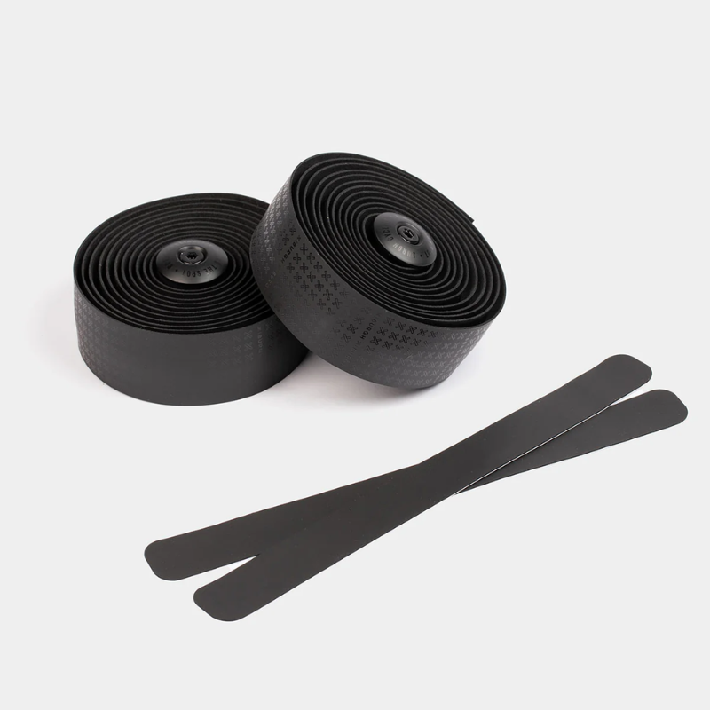 To finish installation, lock the bar tape in place with regular or electrical tape and top it off with the supplied finishing tape.